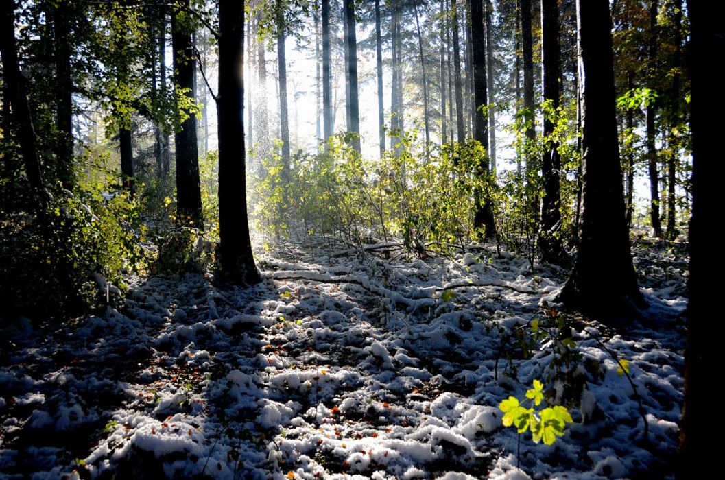 Herbstwald mit Schnee